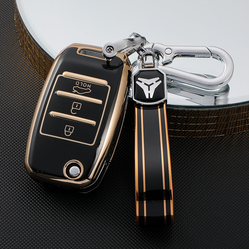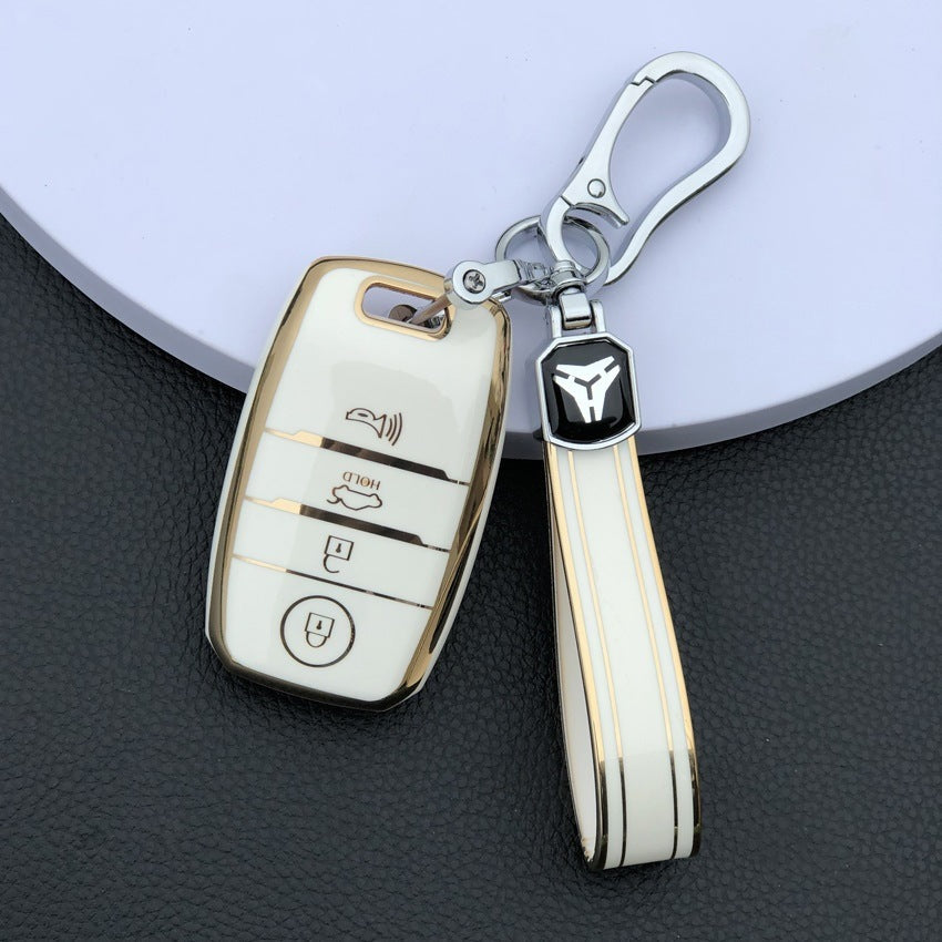 Acto TPU Gold Series Car Key Cover With TPU Gold Key Chain For Kia Seltos