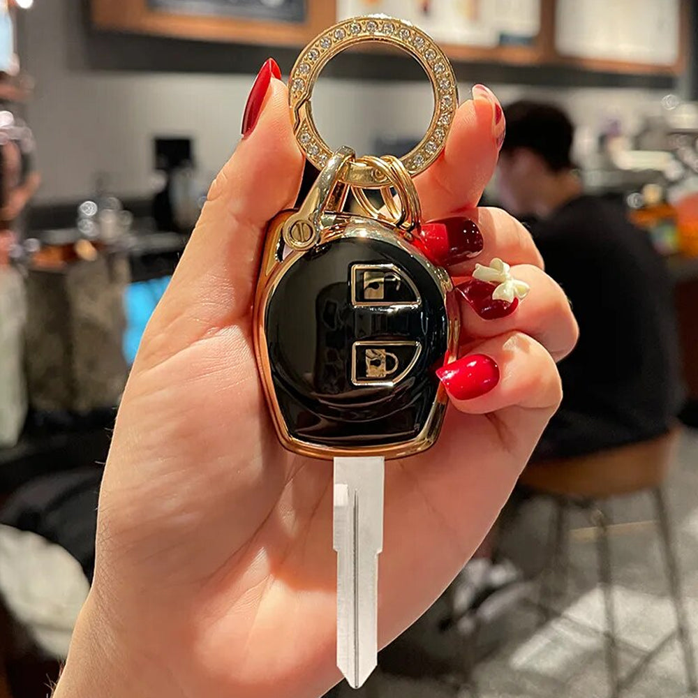 Acto TPU Gold Series Car Key Cover With Diamond Key Ring For Suzuki Ignis
