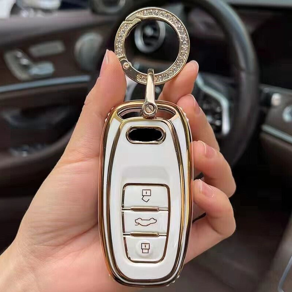 Acto TPU Gold Series Car Key Cover With Diamond Key Ring For Audi A6