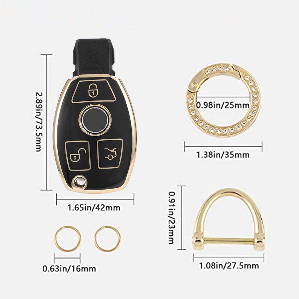 Acto TPU Gold Series Car Key Cover With Diamond Key Ring For Mercedes CLA-CLASS