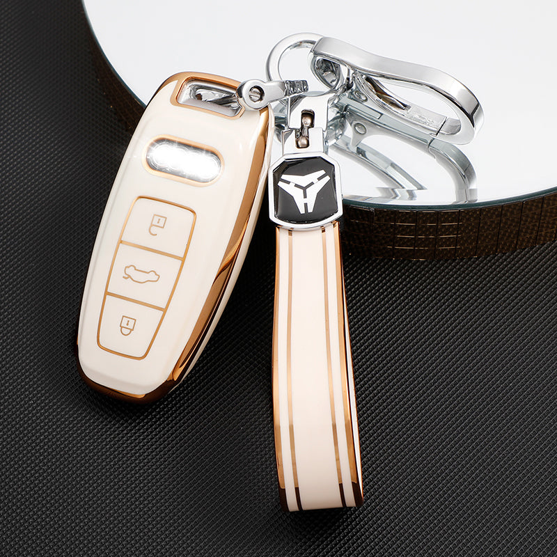 Acto TPU Gold Series Car Key Cover With TPU Gold Key Chain For Audi Q7