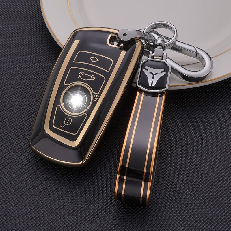 Acto TPU Gold Series Car Key Cover With TPU Gold Key Chain For BMW 7 Series